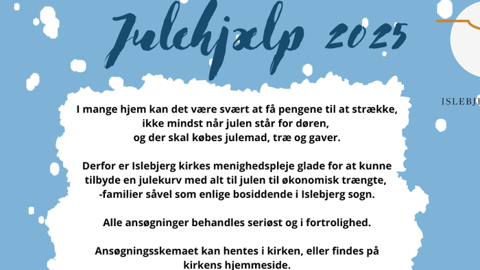 Julekurve uddeles til både familier og enlige, som er økonomisk trængte og som er bosiddende i Islebjerg Sogn. Sidste frist for ansøgning om julekurv er d. 4. december.